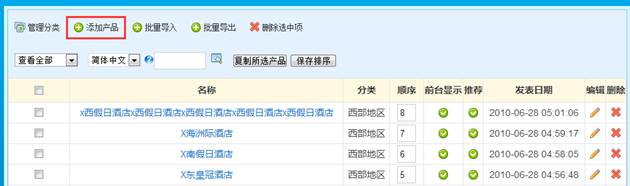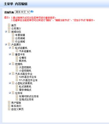 可按面板提示对菜单进行修改、删除、增加、排序等操作。导航并不与产品分类、新闻分类同步生成,修改产品新闻分类,需要手工添加修改导航。