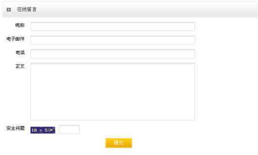 4. 留言:可以实现客户在线留言。操作类似添加用户登录模块,添加后显示效果如下图。