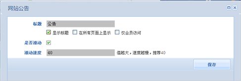 5. 网站公告:可以在页面需要的位置添加网站公告板。