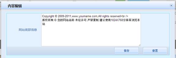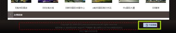 编辑模式下,鼠标指向网站底部内容,点击浮出的“内容编辑”按钮弹出内容编辑框