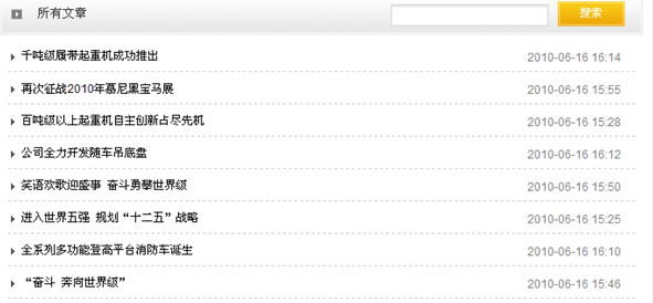 选择需要显示文章列表的所属文章分类,这里我们选择所有文章,用户点击此页面后看到的页面将会是所有文章的录入时间和标题列表,显示效果为: