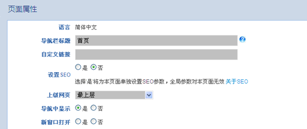 导航栏标题:即是网站栏目的标题。 自定义链接:自定义地址栏页面地址。网站每个栏目,有不同URL地址且可以任意修改,有利于SEO优化。使用此功能需要选择访问模式为自定义链接方式。 设置SEO